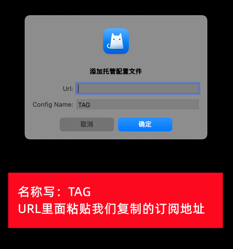 拷贝后,我们在ClashX里面添加订阅